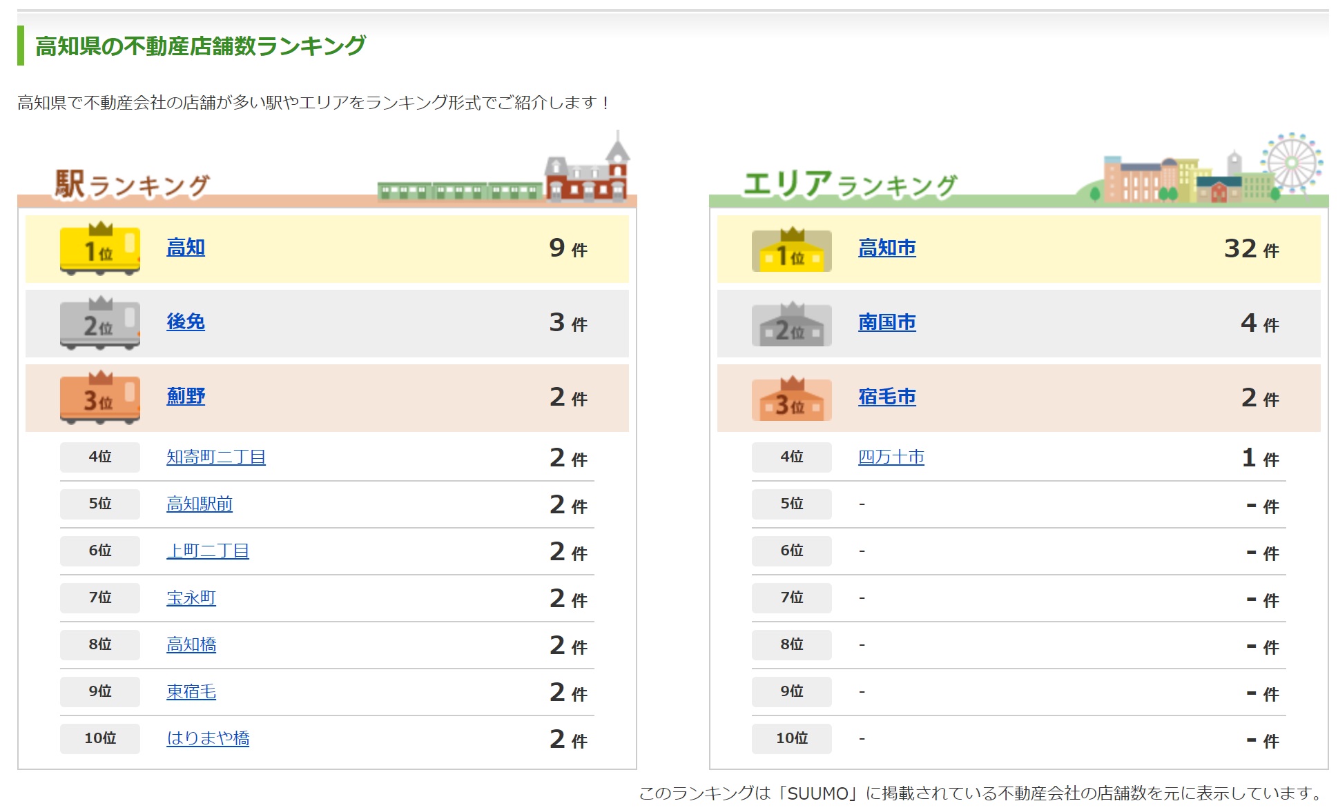 | 10位 | スウィング不動産 | 地域密着 | 全般的に取り扱い | 高知市中心 |