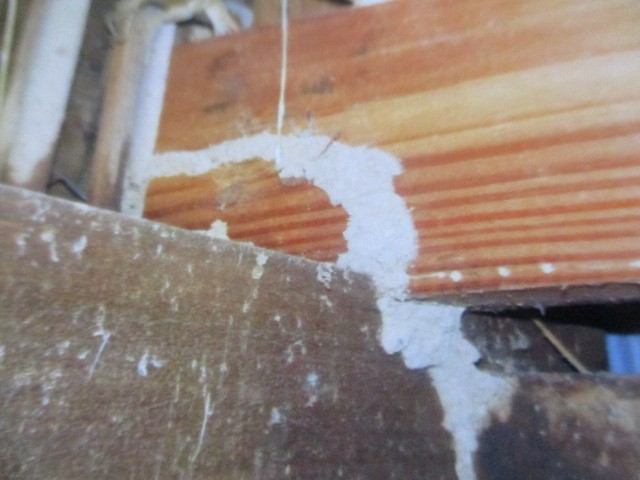 ブロック基礎の間から侵入し、床材に蟻道を作って浸食しています。種類はイエシロアリと言って、家を全部食べつくす恐怖のシロアリです。ブロック基礎はシロアリ被害にあいやすい構造です。
